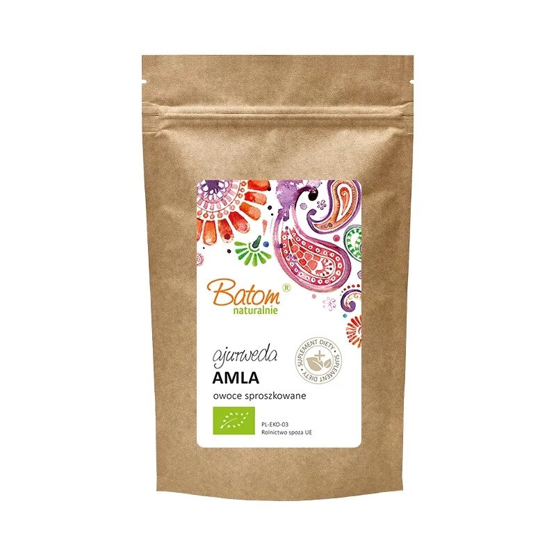 Amla proszek BATOM BIO to naturalny suplement diety wytworzony z suszonych owoców agrestu indyjskiego (Emblica officinalis) w certyfikowanej jakości ekologicznej. Ten wyjątkowy superfood jest jednym z najbogatszych naturalnych źródeł witaminy C, zawierając jej nawet 20 razy więcej niż pomarańcze, co czyni go idealnym wsparciem dla układu odpornościowego i ogólnego zdrowia organizmu.