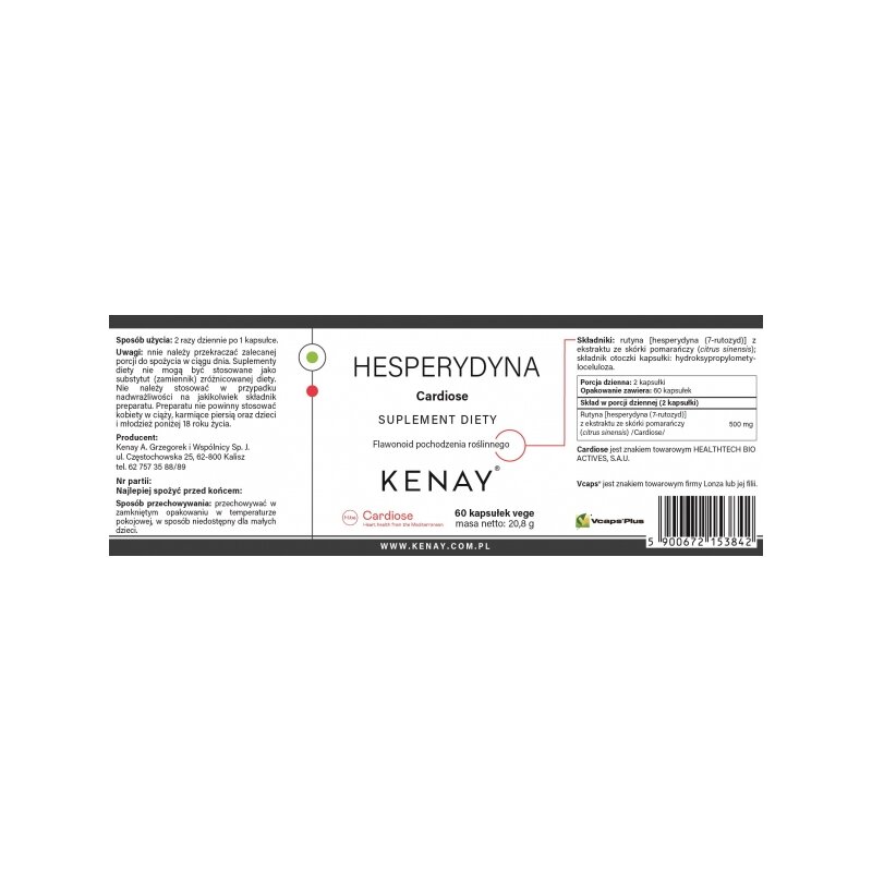 Cardiose Hesperdyna to suplement diety firmy Kenay zawierający wysokiej jakości hesperydynę – naturalny bioflawonoid wspomagający funkcje układu sercowo-naczyniowego. Działa angioprotekcyjnie, poprawia mikrokrążenie, wspiera prawidłowe ciśnienie tętnicze oraz chroni komórki przed stresem oksydacyjnym. Stosowanie preparatu przyczynia się do ogólnej poprawy kondycji i odporności organizmu.