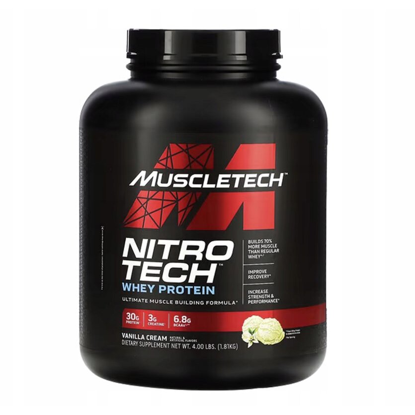 MuscleTech Nitro Tech to innowacyjne wspomaganie odżywcze zawierające 30 g czystego białka na porcję, dedykowane osobom ćwiczącym na siłowni. Zawiera szybko wchłaniane białko serwatki oraz dodatek BCAA i glutationu, wspierając szybką regenerację mięśni i wzrost masy mięśniowej.