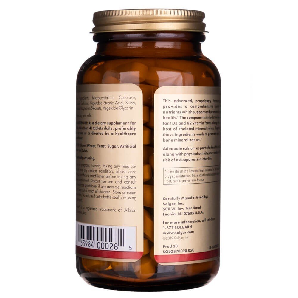 Solgar Advanced Calcium Complex to profesjonalna suplementacja wapniem skomponowana z dodatkiem witamin D3 i K2 oraz mikroelementów, które wspomagają wchłanianie minerału i utrzymują zdrowie układu mięśniowo-szkieletowego. Formuła została opracowana z myślą o osoby poszukujących skutecznego wsparcia dla gęstości kości i ogólnego dobrostanu.