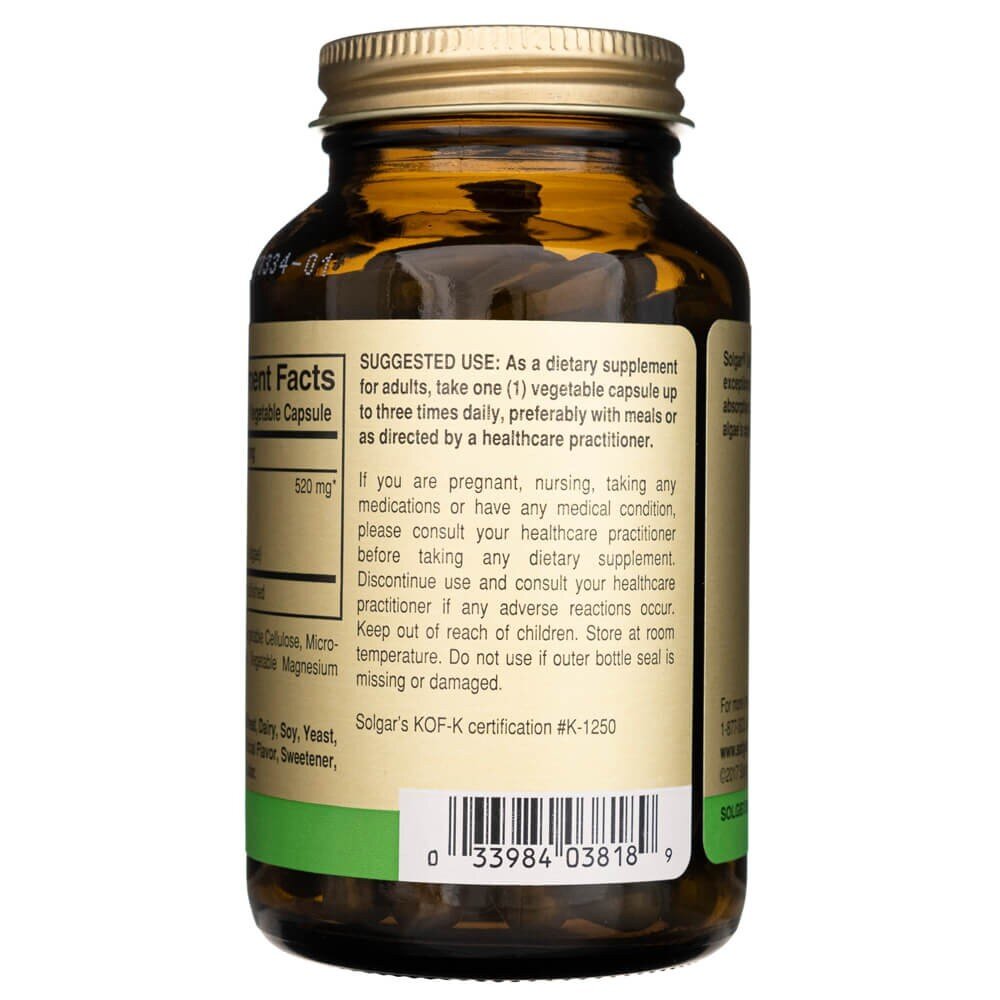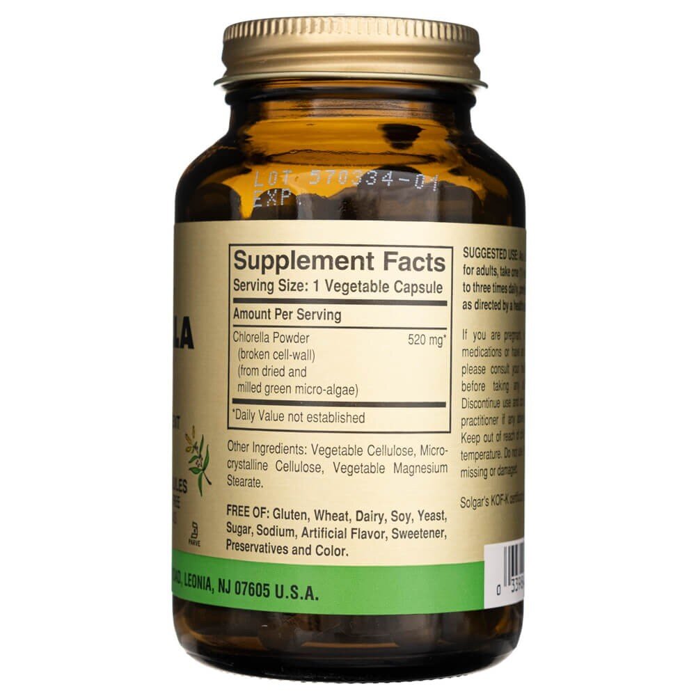 Solgar Chlorella 520 mg to wysokiej jakości suplement diety w formie kapsułek, wspierający detoksykację organizmu, wzbogacenie organizm o składniki odżywcze oraz poprawę ogólnej kondycji. Produkt bazuje na naturalnej chloreli – mikroskopijnej aligie, bogatej w chlorki, peptydy i witaminy.
